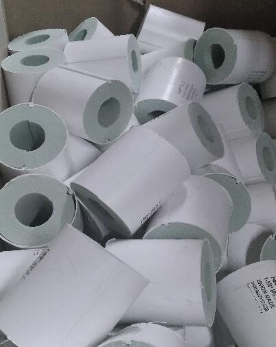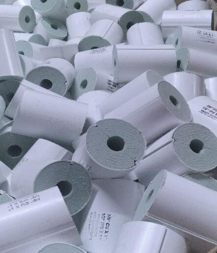 The original Snappitz, consist of a fully encased plenum rated fire resistance PVC jacketed thermal insulated pipe support with vapor barrier. The SNP 1000 installs in seconds and is designed to adhere to the exact outside diameter of the mechanical pipe insulation covering, used throughout the mechanical insulation industry.
